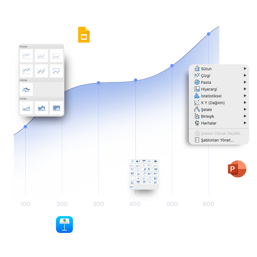 Tutarlı görünüm, hızlanan sunum üretimi kazandırır. Ekipleriniz sunum kalitesinde standart oluştururken üretim hızları artar.